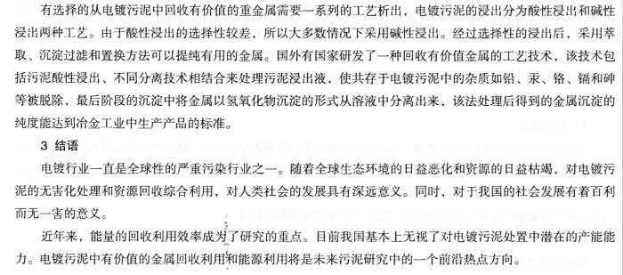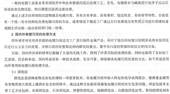 摘要——電鍍污泥含有一定量的銅、鎳、鉻、鋅等金屬,屬于危險(xiǎn)廢物。對其中的金屬(尤其是重金屬)進(jìn)行資源化利用,能有效地消除電鍍污泥重金屬的二次污染,同時(shí)也能帶來可觀的經(jīng)濟(jì)和環(huán)境效益。本文介紹了電鍍污泥的來源與分類,重點(diǎn)介紹了電鍍污泥的國內(nèi)外處理方法,為今后的研究提供一些思路,最大限度的減少重金屬污染。